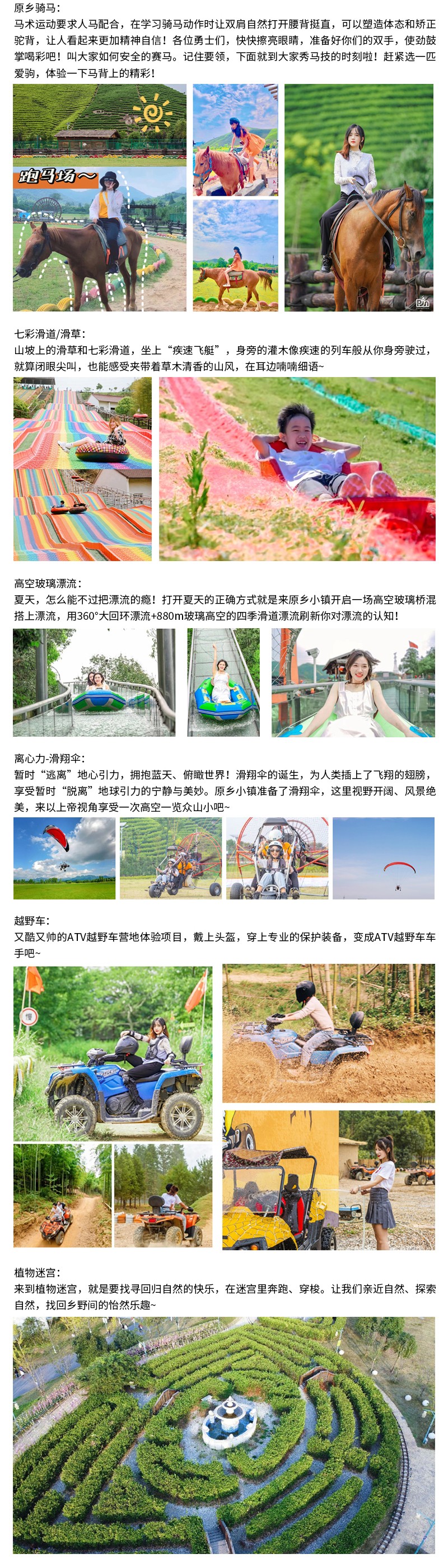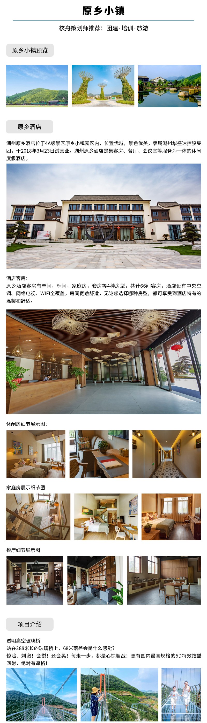 核舟安吉拓展基地-原鄉(xiāng)小鎮(zhèn)地處莫干山脈北麓的湖州吳興妙西的原鄉(xiāng)探險(xiǎn)公園,按照“一館兩園五區(qū)”布局,建有全亞洲最大,集蝴蝶養(yǎng)殖、觀賞、放飛、科普教育為一體的生態(tài)科普館;坐擁千畝梅花觀賞園,沿山勢(shì)建有全國(guó)最長(zhǎng)的原枕木觀光棧道。內(nèi)設(shè)288米長(zhǎng)88米落差及酷炫5D特效的玻璃橋、玻璃滑道、彩虹滑草、高標(biāo)準(zhǔn)馬場(chǎng)、軌道長(zhǎng)約1500米的童話小火車等項(xiàng)目,是華東首個(gè)以運(yùn)動(dòng)探險(xiǎn)為主題國(guó)家級(jí)AAAA景區(qū)。