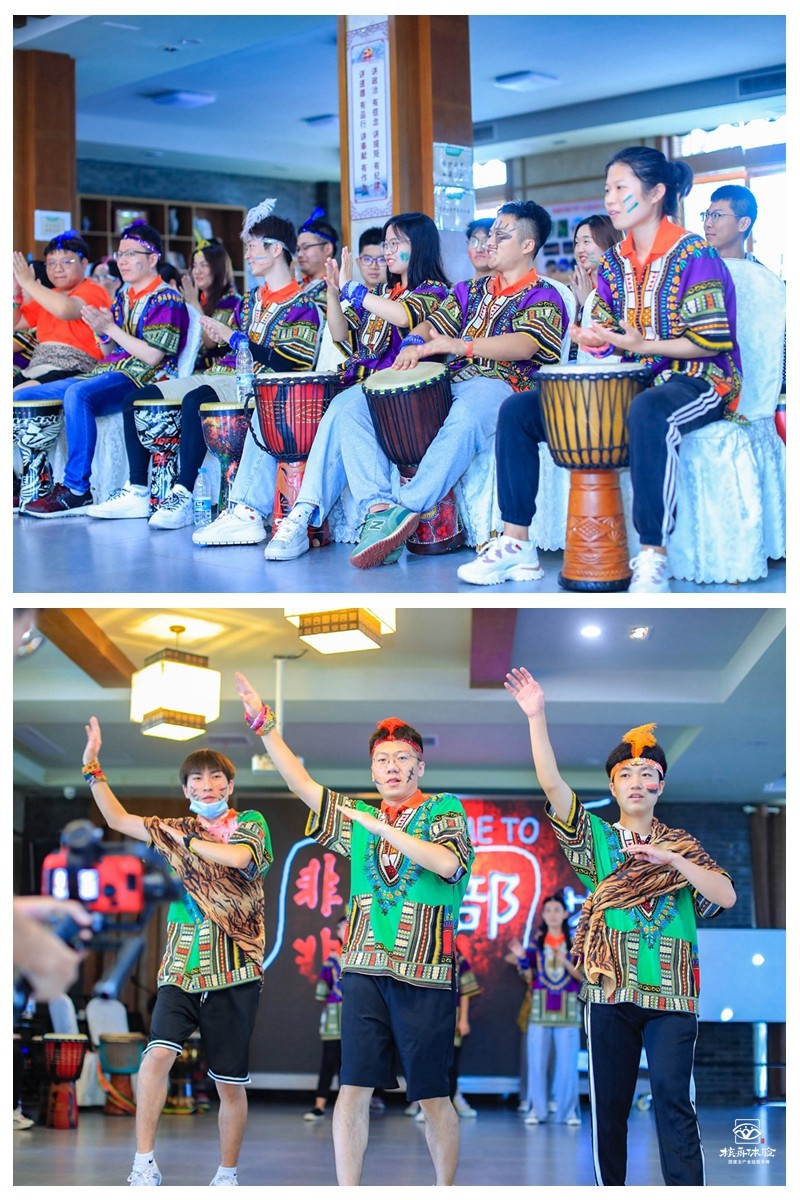 第二天的上午,伙伴們參與了一場音樂的盛典——非洲鼓,從陌生到熟悉,再到大家共譜一首樂曲,這其中都離不開小伙伴齊心協力的合作與配合。