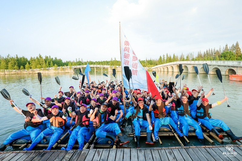 扎筏泅渡是一項在水上進行的協作性、規劃性極強的團隊競賽拓展項目,