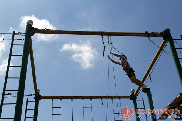 設定目標,在隊友的支持與鼓勵下,一鼓作氣,突破層層心理障礙,到達距地面8米的高空,給自己一次挑戰(zhàn)的機會……