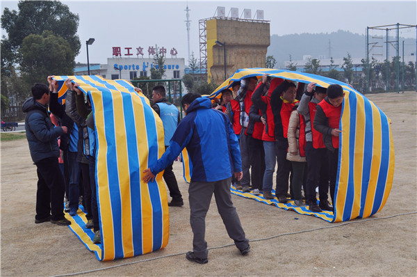 小游戲“大象 老虎 老鼠”,讓學員們斗智斗勇,勝利的那一刻讓人歡呼雀躍;立體電網不同于常見的穿越電網,難度更大,更能讓團隊成員凝成一條繩,齊心協力;呼吸的力量,需結合團隊的智慧與力量,方能成功;浣熊圈,考驗整個團隊成員的配合默契度,信任度,以及成員的反應速度等。