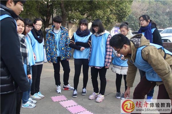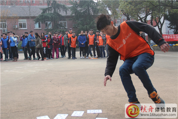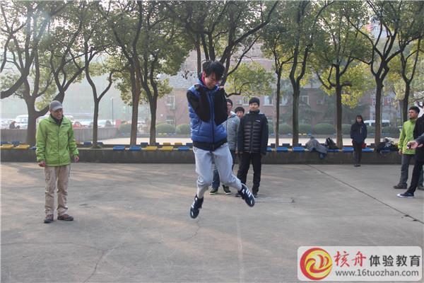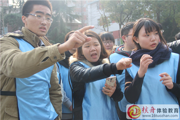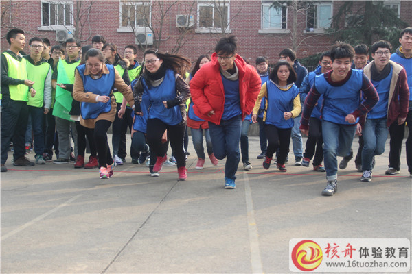 2015年12月30日,學院與核舟體驗教育合作第3年,為90位精英學生進行了一場拓展訓練,核舟體驗教育王祿武老師正在給學生們做講解……團隊成員融入的體驗課程的環境與氛圍中很重要,熱身融入活動——卡通跳,大家角色扮演,一片熱鬧景象……