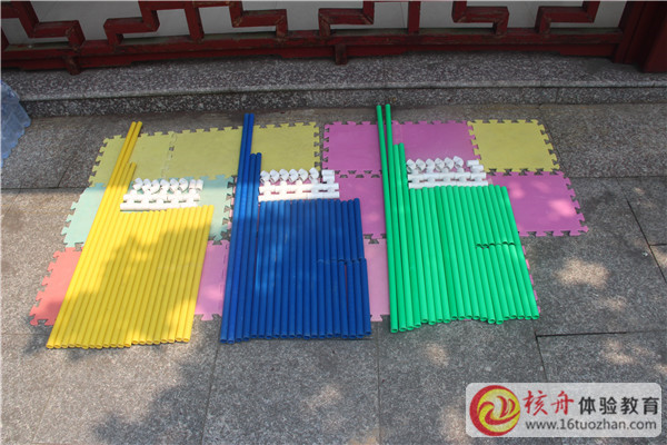 呼吸力量——組員分為領導、指揮、執行三小組,領導組和指揮組相互規定區域內口頭溝通,領導組提出具體要求,指揮組來指揮執行組搭建符合要求的生命儀器,然后進行儀器的測試。