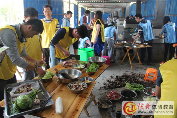 上午進行的拓展項目是團隊定向。在定向過程中,各隊要通過團結合作,開動腦筋來完成不同的挑戰——釘子游戲,擊鼓顛球,齊眉棍等。哪隊積累的分數越多,他們就會獲得更多的“錢”用來豐富中午的午餐。