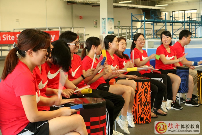 鼓樂圈——在核舟體驗的吳勇教練的帶領下,利用鼓和品種多樣的擊打樂器來共同完成多種節奏的組合,進行律動游戲或音樂共創,促成人與人協作的強烈體驗感,創造出多元化的音樂氛圍,是伙伴們迅速融入團隊,愉悅身心,緩解壓力,提升團隊凝聚力。