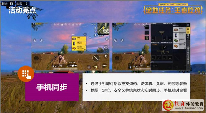 與手機同步,可以實現(xiàn)在現(xiàn)實戰(zhàn)斗場地撿彈藥、防彈衣、頭盔、藥包等;